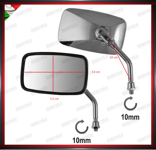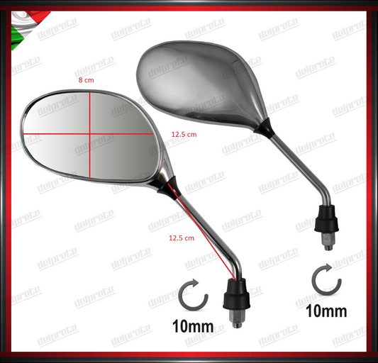 SPECCHIETTI MOTO SCOOTER CUSTOM PER MANUBRIO CROMATO M10 REGOLABILI DX + SX