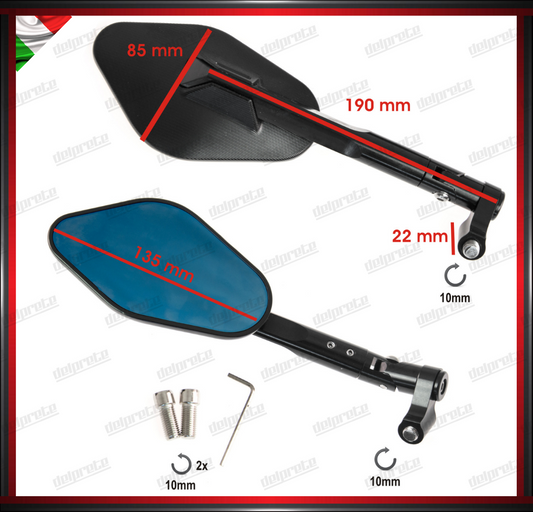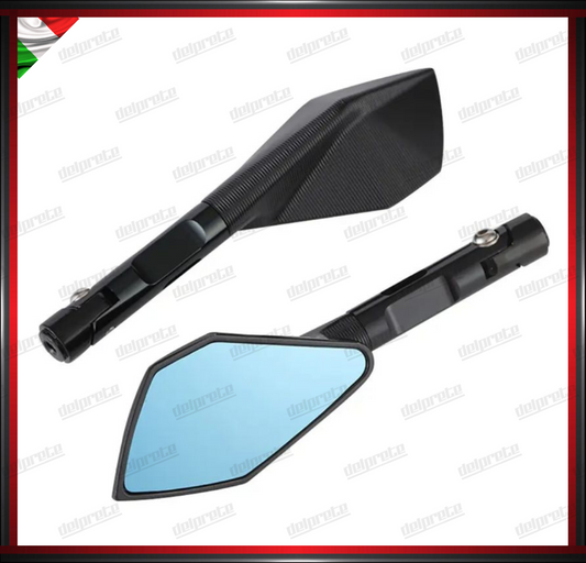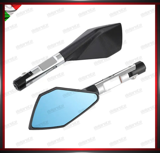 SPECCHIETTI MOTO SCOOTER CUSTOM PER MANUBRIO CARBONIO M8 M10 REGOLABILI DX + SX