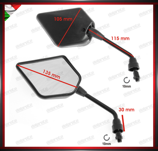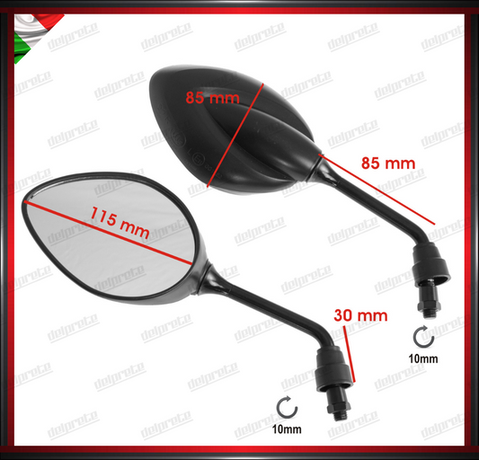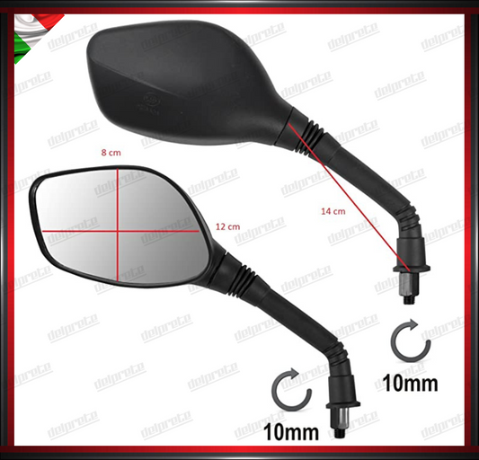 SPECCHIETTI MOTO SCOOTER CUSTOM PER MANUBRIO NERO M10 REGOLABILI DX + SX