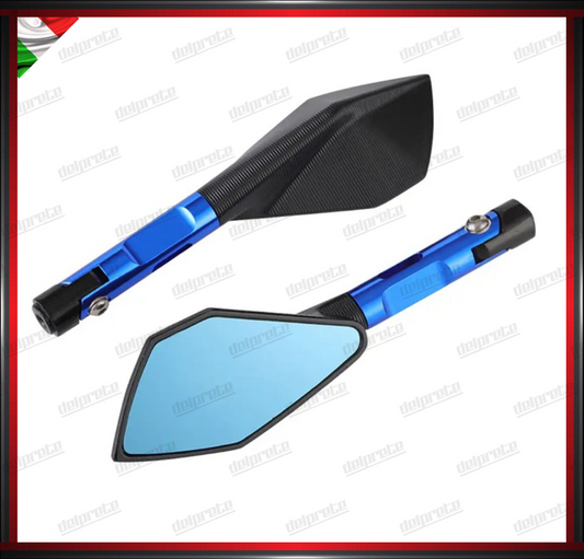 SPECCHIETTI MOTO SCOOTER NAKED IN METALLO BLU 10MM REGOLABILI CUSTOM DX + SX