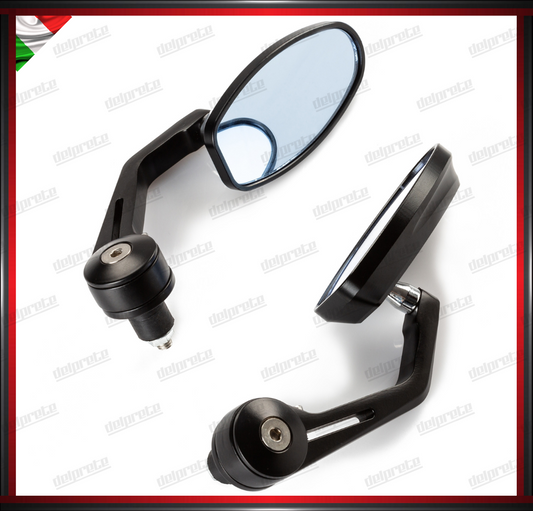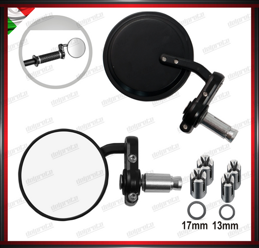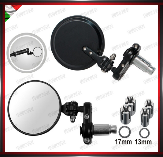 SPECCHIETTI MOTO NAKED PER MANUBRIO BAR END CAFE RACER REGOLABILI NERO DX + SX