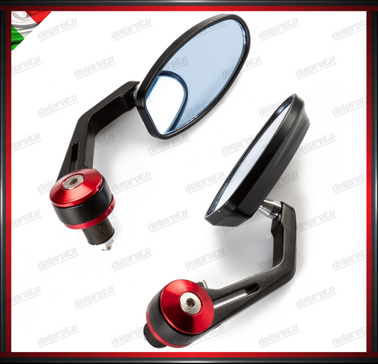 SPECCHIETTI MOTO NAKED PER MANUBRIO BAR END CAFE RACER REGOLABILI ROSSO DX + SX
