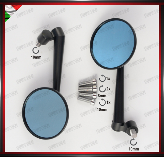 SPECCHIETTI MOTO SCOOTER CUSTOM PER MANUBRIO M8 M10 REGOLABILI NERO DX + SX