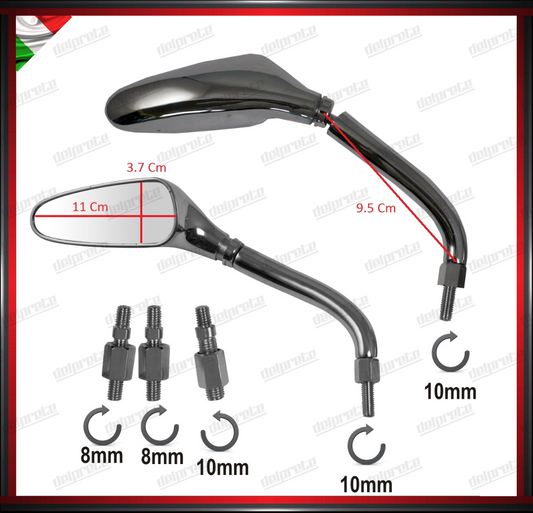 SPECCHIETTI MOTO SCOOTER CUSTOM PER MANUBRIO M8 M10 REGOLABILI CROMATO DX + SX