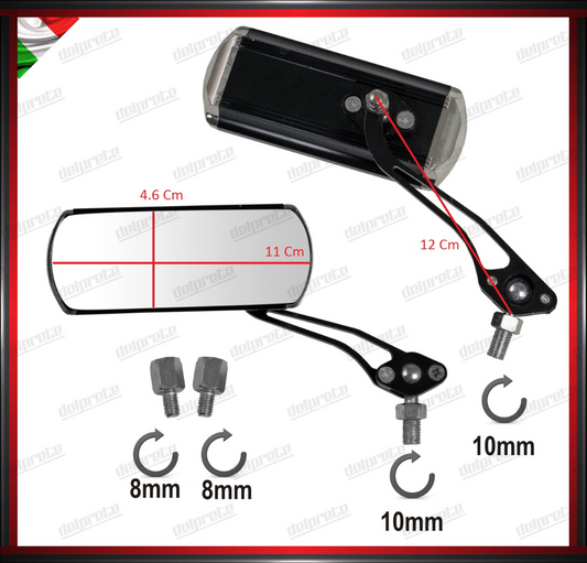 SPECCHIETTI MOTO SCOOTER MANUBRIO 10 mm M10 REGOLABILI CROMATO NERO DX + SX