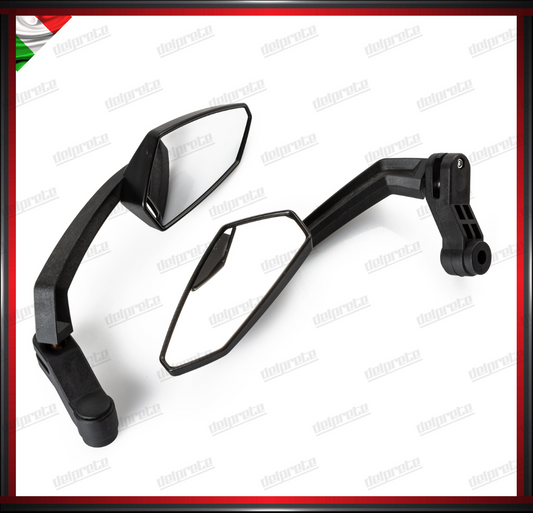 SPECCHIETTI MOTO SCOOTER PER MANUBRIO BAR END CAFE RACER REGOLABILI NERO DX + SX