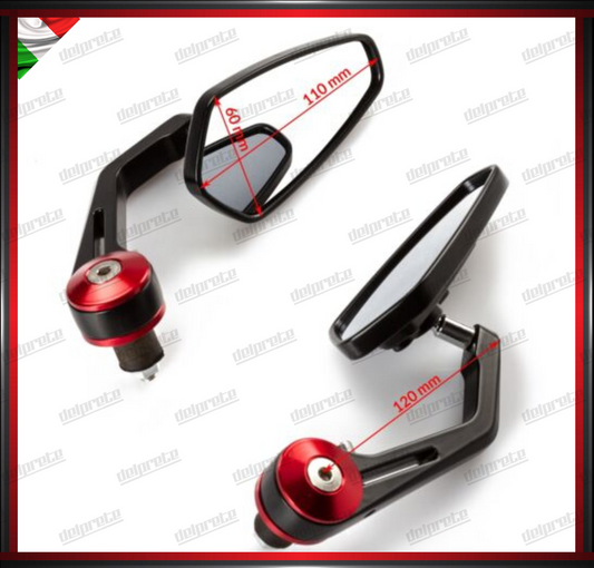 SPECCHIETTI RETROVISORI MANUBRIO COPPIA PER MOTO SCOOTER BAR END ROSSO CAFE RACER