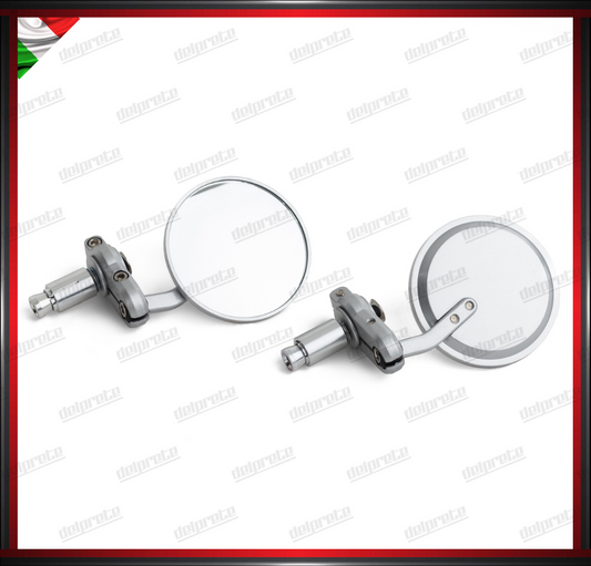 SPECCHIETTI RETROVISORI MANUBRIO COPPIA PER MOTO SCOOTER BAR END ARGENTO CAFE RACER