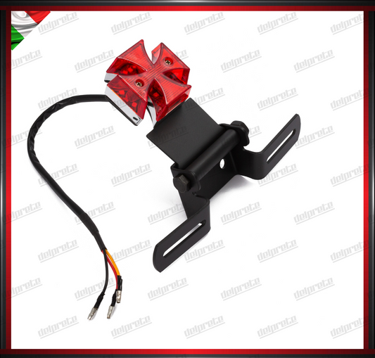 FANALE STOP MOTO CAFE RACER CUSTOM A CROCE OMOLOGATO LED PORTATARGA E LUCE TARGA