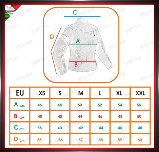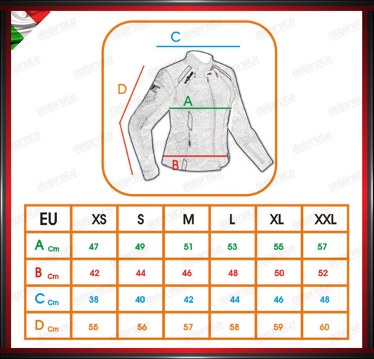 GIACCA MOTO DONNA IN TESSUTO ROSSO IMPERMEABILE PROTEZIONI OMOLOGATE CE