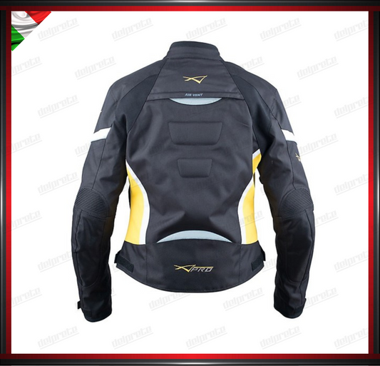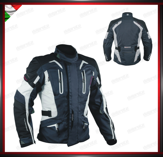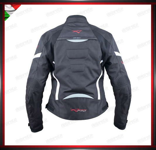 GIACCA MOTO DONNA NERO E BIANCO 4 STAGIONI IMPERMEABILE PROTEZIONI OMOLOGATE CE