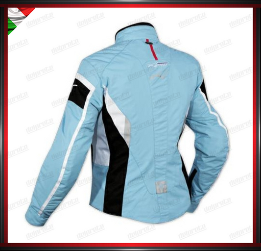 GIACCA MOTO DONNA BLU E BIANCO 4 STAGIONI IMPERMEABILE PROTEZIONI OMOLOGATE CE