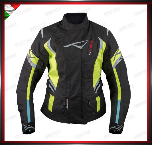 GIACCA MOTO DA DONNA FLUO IMPERMEABILE TRASPIRANTE PROTEZIONI OMOLOGATE CE