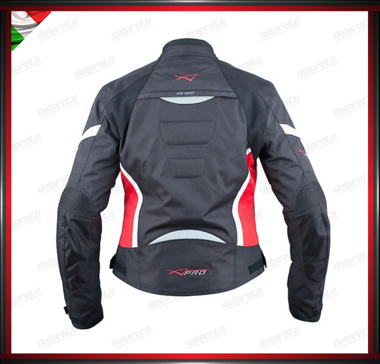 GIACCA MOTO DONNA ROSSO E BIANCO 4 STAGIONI IMPERMEABILE PROTEZIONI OMOLOGATE CE
