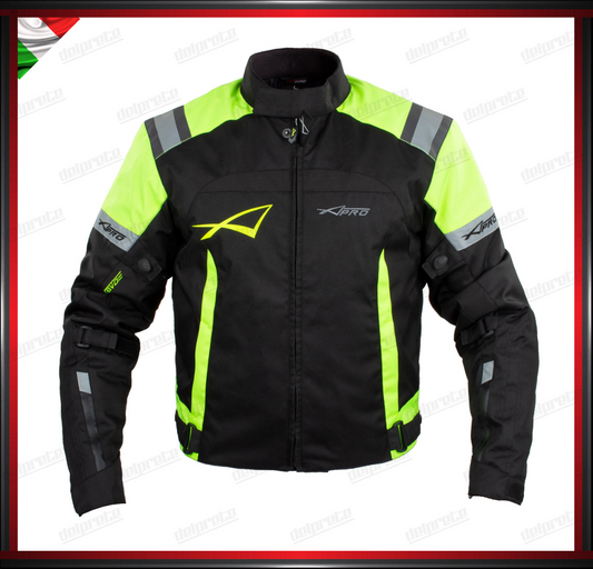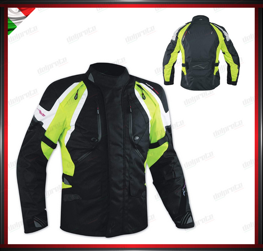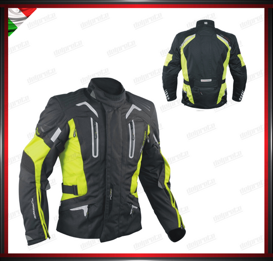 GIACCA MOTO FLUO IN TESSUTO PROTEZIONI OMOLOGATE CE RIFLETTENTE IMPERMEABILE E RESPIRANTE