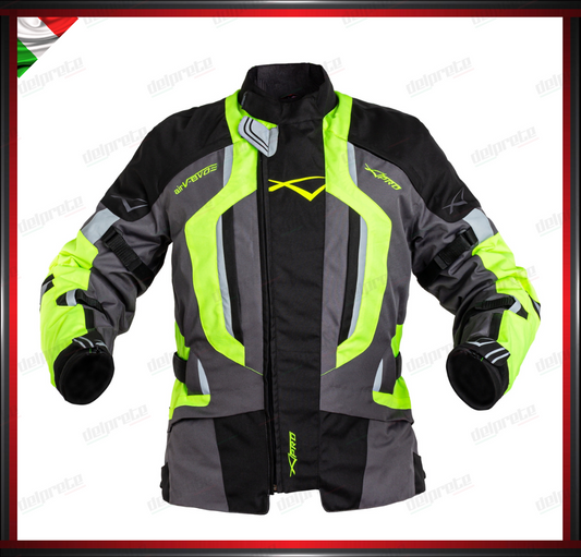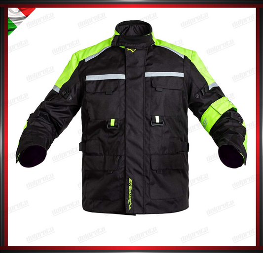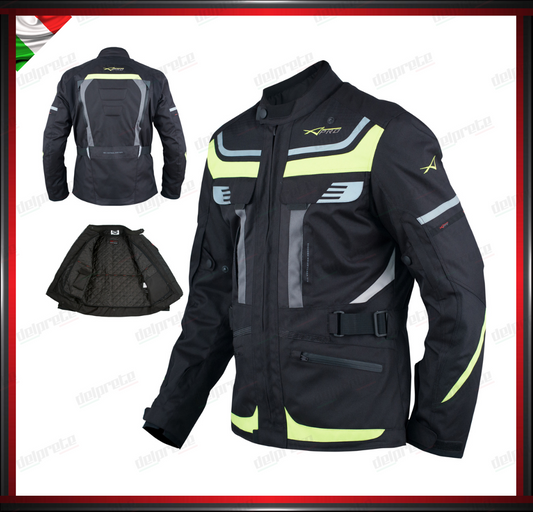 GIACCA MOTO FLUO SFODERABILE A STRATI 4 STAGIONI IMPERMEABILE TERMICA MESH TRAFORATO