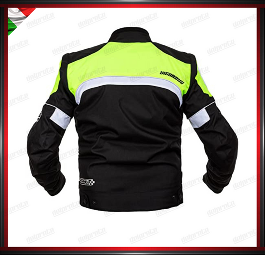 GIACCA MOTO FLUO IN TESSUTO CORDURA INTERNO SFODERABILE PROTEZIONI CE ESTIVA