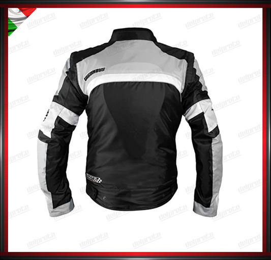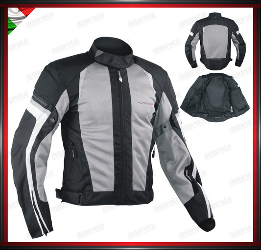 GIACCA MOTO GRIGIO E NERO IN TESSUTO MESH ESTIVA TRASPIRANTE PROTEZIONI OMOLOGATE CE