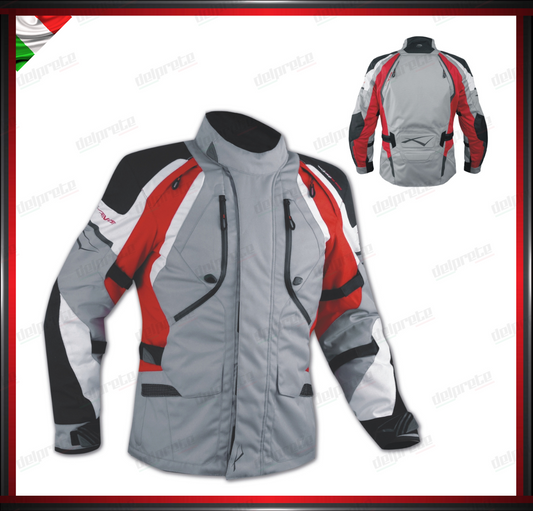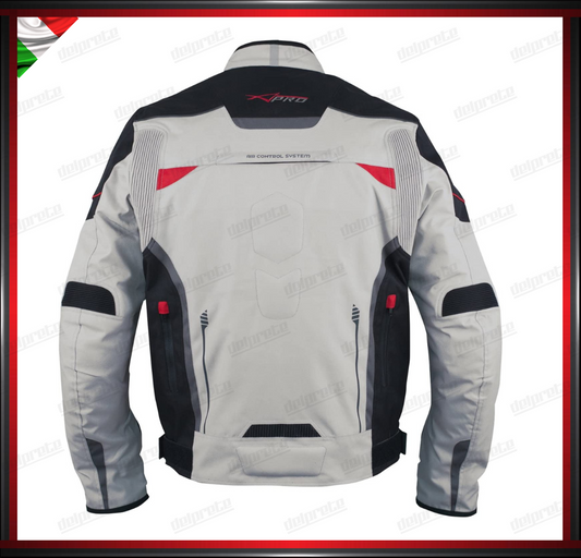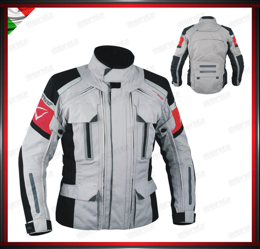 GIACCA MOTO GRIGIO INSERTI ROSSI SFODERABILE A STRATI 4 STAGIONI IMPERMEABILE TERMICA MESH TRAFORATO