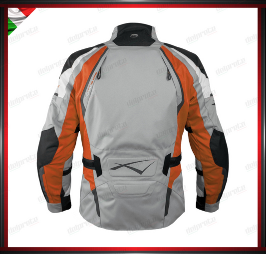 GIACCA MOTO GRIGIO E ARANCIONE IN TESSUTO IMPERMEABILE FODERA TERMICA REMOVIBILE PROTEZIONI OMOLOGATE CE