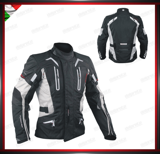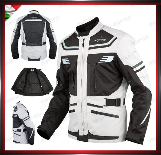 GIACCA MOTO GRIGIO IN TESSUTO PROTEZIONI OMOLOGATE CE RIFLETTENTE IMPERMEABILE E RESPIRANTE