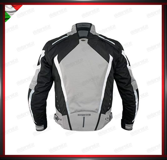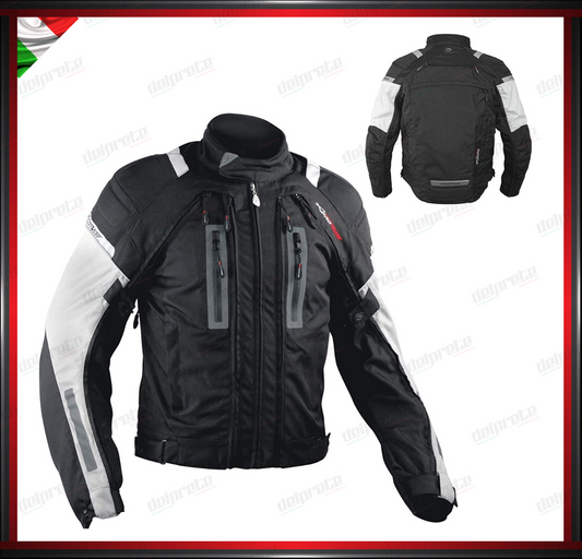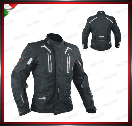 GIACCA MOTO IN TESSUTO GRIGIO NERO CORDURA MESH 4 STAGIONI IMPERMEABILI PROTEZIONI OMOLOGATE CE