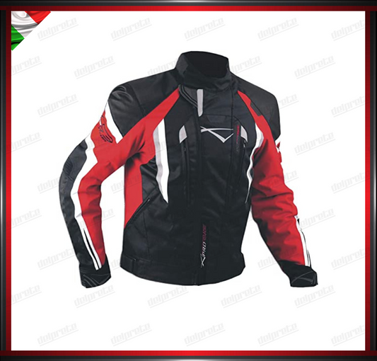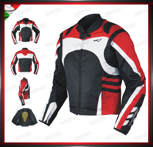 GIACCA MOTO IN TESSUTO ROSSO CORDURA MESH 4 STAGIONI IMPERMEABILI PROTEZIONI OMOLOGATE CE