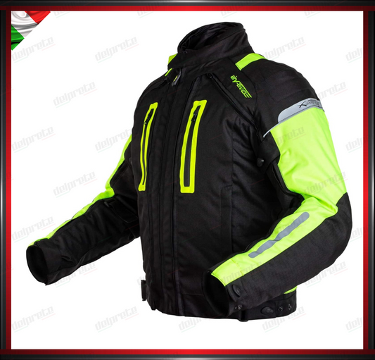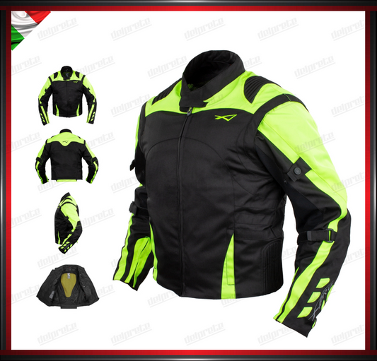 GIACCA MOTO IN TESSUTO FLUO CORDURA MESH 4 STAGIONI IMPERMEABILI PROTEZIONI OMOLOGATE CE