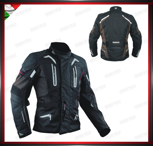 GIACCA MOTO MARRONE 4 STAGIONI SFODERABILE TERMICA IMPERMEABILE PROTEZIONI OMOLOGATE CE