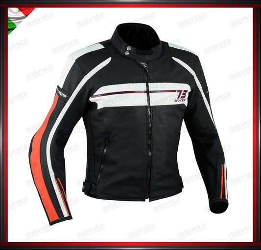 GIACCA MOTO IN VERA PELLE SPORT CON PROTEZIONI OMOLOGATE RINFORZO SCHIENA BIANCO