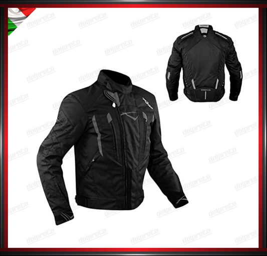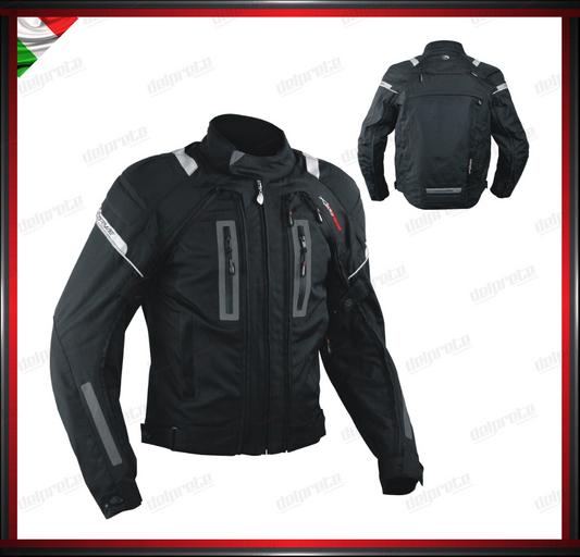 GIACCA MOTO IN TESSUTO NERO CORDURA MESH 4 STAGIONI IMPERMEABILI PROTEZIONI OMOLOGATE CE
