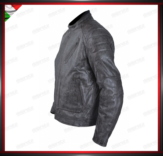 GIACCA MOTO IN VERA PELLE TRATTAMENTO INVECCHIATO VINTAGE CUSTOM PROTEZIONI OMOLOGATE