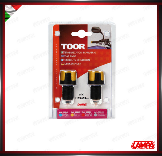 TOOR COPPIA CONTRAPPESI LAMPA MANUBRIO NERO ORO MOTO SCOOTER STABILIZZATORI BILANCIERI UNIVERSALI ALLUMINIO