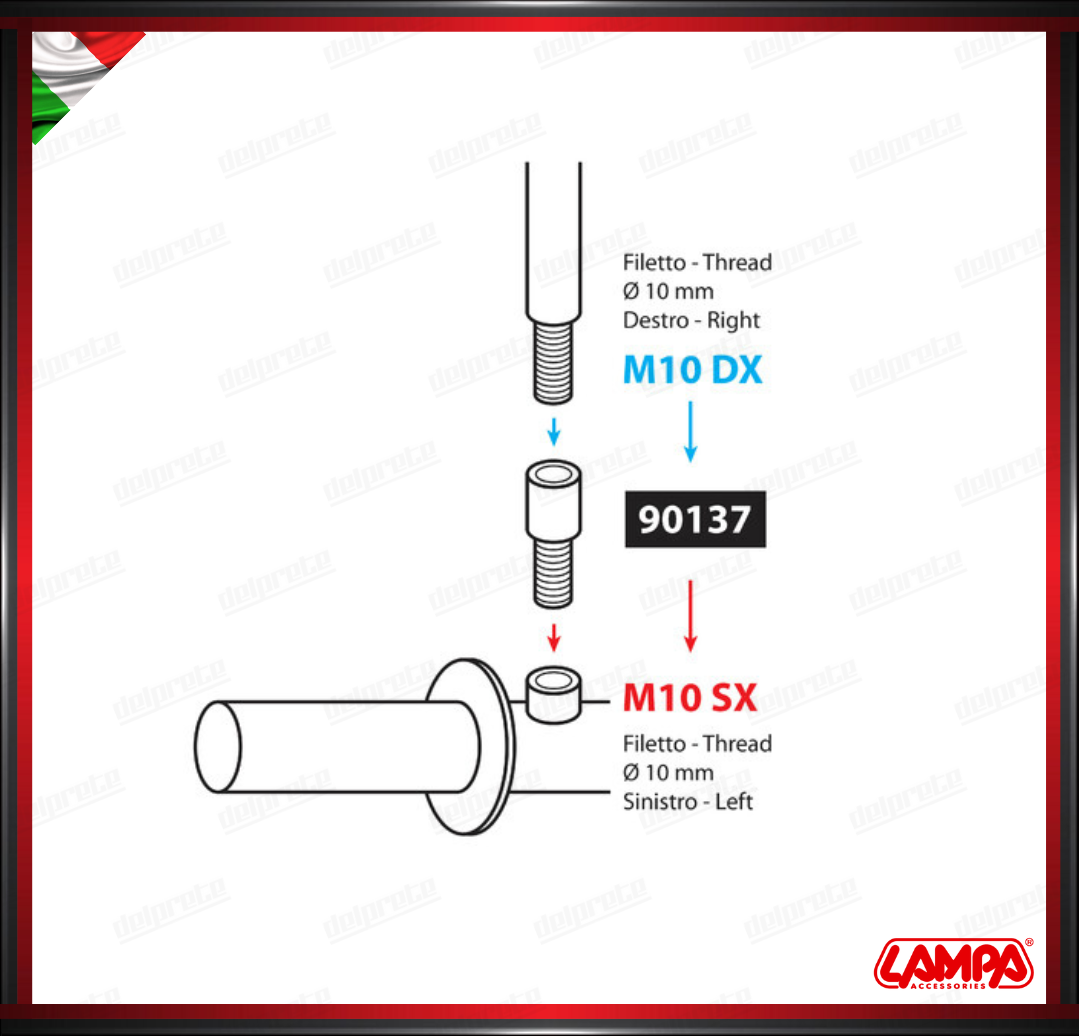ADATTATORE PER SPECCHIETTO NERO RETROVISORE FILETTO Ø 10 MM DX > Ø 10 MM SX