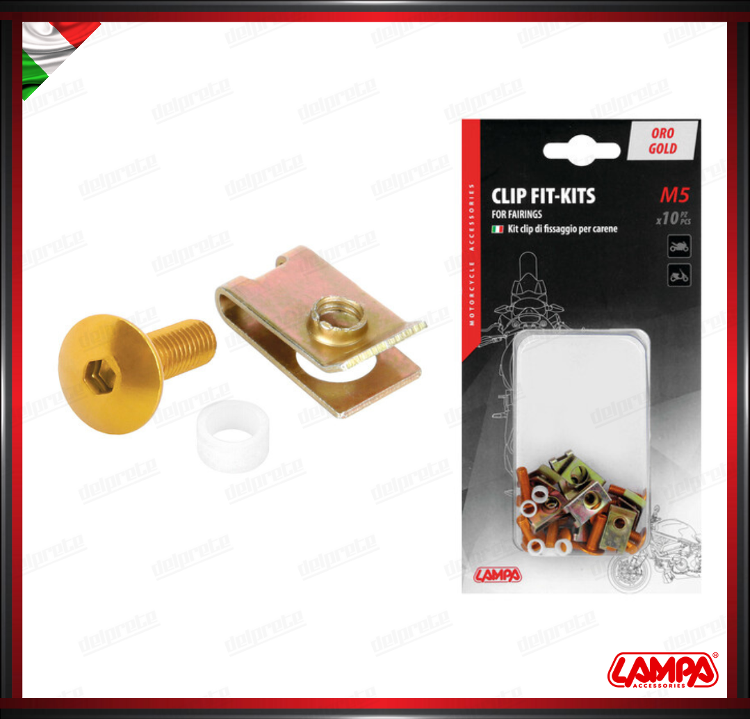 CLIP FIT-KITS VITERIA FISSAGGIO CARENE ( 5 MA ) SET 10PZ ORO VITI ANODIZZATE LAMPA