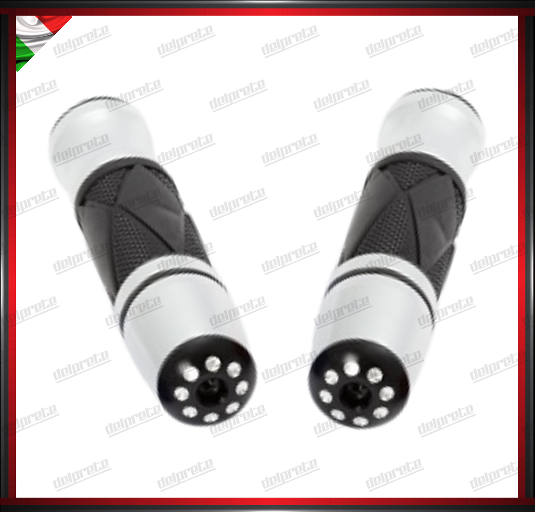 COPPIA MANOPOLE MOTO SCOOTER ANODIZZATE ALLUMINIO GOMMA ARGENTO UNIVERSALI