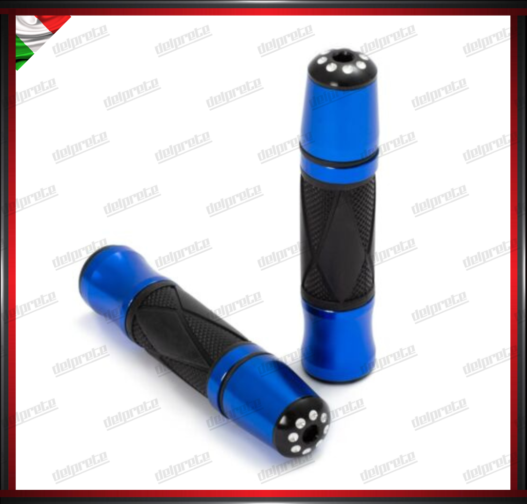 COPPIA MANOPOLE MOTO SCOOTER ANODIZZATE ALLUMINIO GOMMA BLU UNIVERSALI
