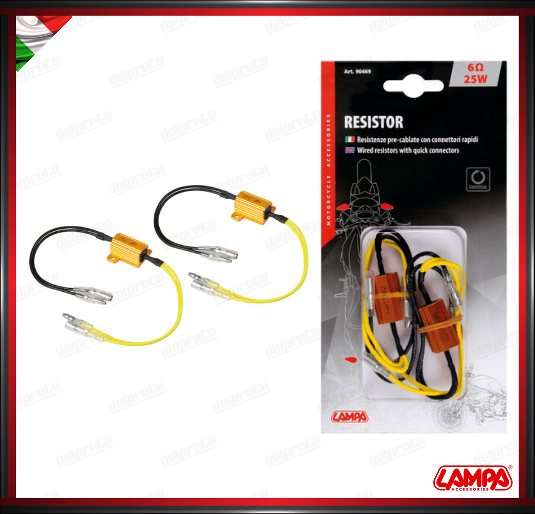 COPPIA RESISTENZE INDICATORI DI DIREZIONE FRECCE LAMPA CONNETTORI RAPIDI - 12V - 6 OHM - 25 W