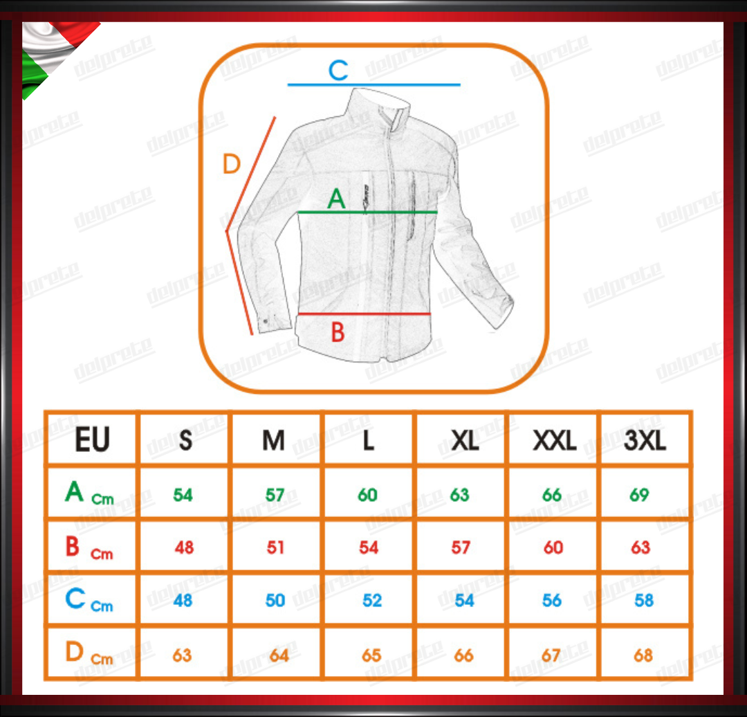 • PROTEZIONI: approvate CE rimovibili su spalle, gomiti e tasca per inserimento protezione schiena.