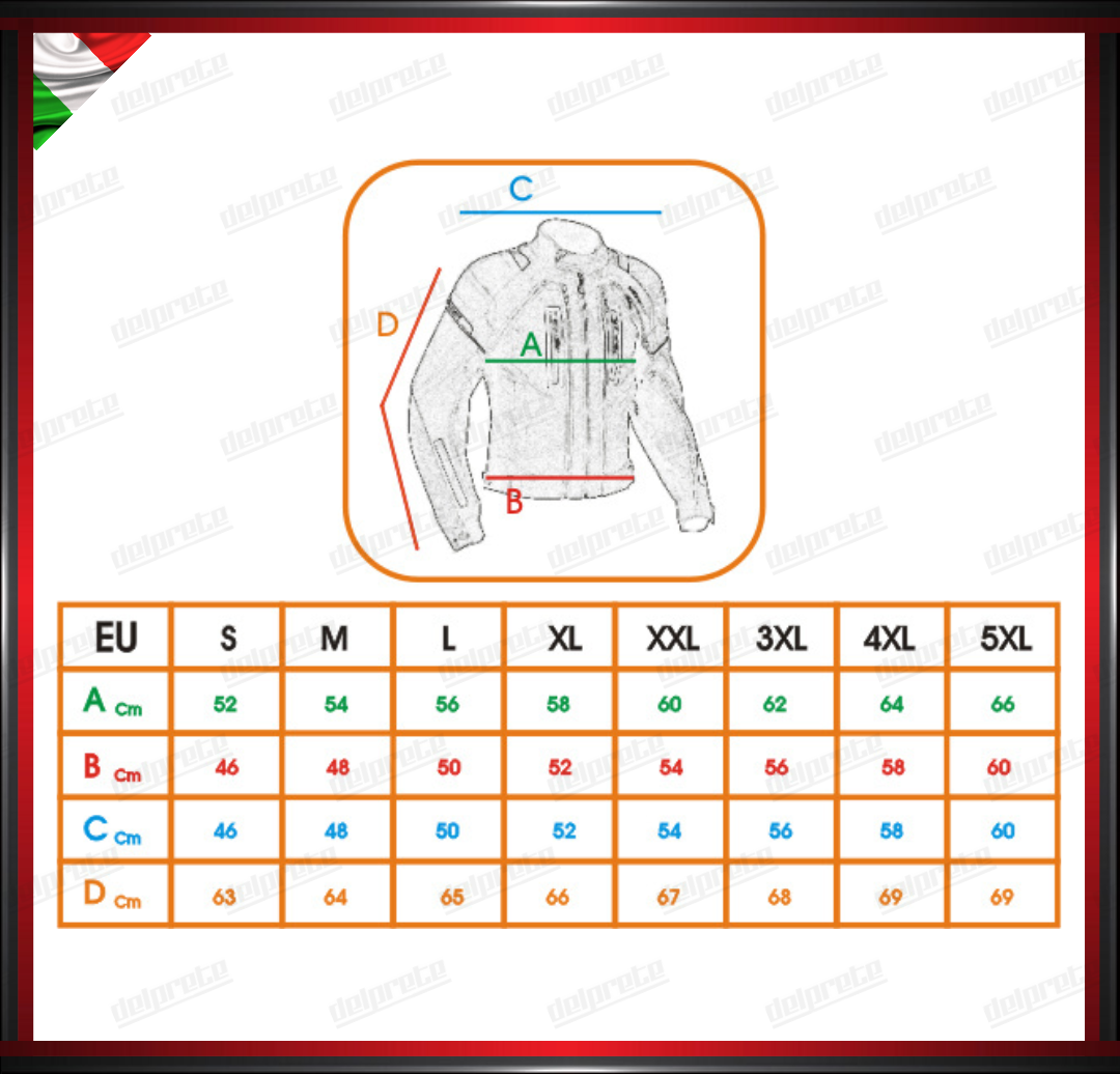 • Il protettore omologato CE per la schiena, può essere acquistato su richiesta.