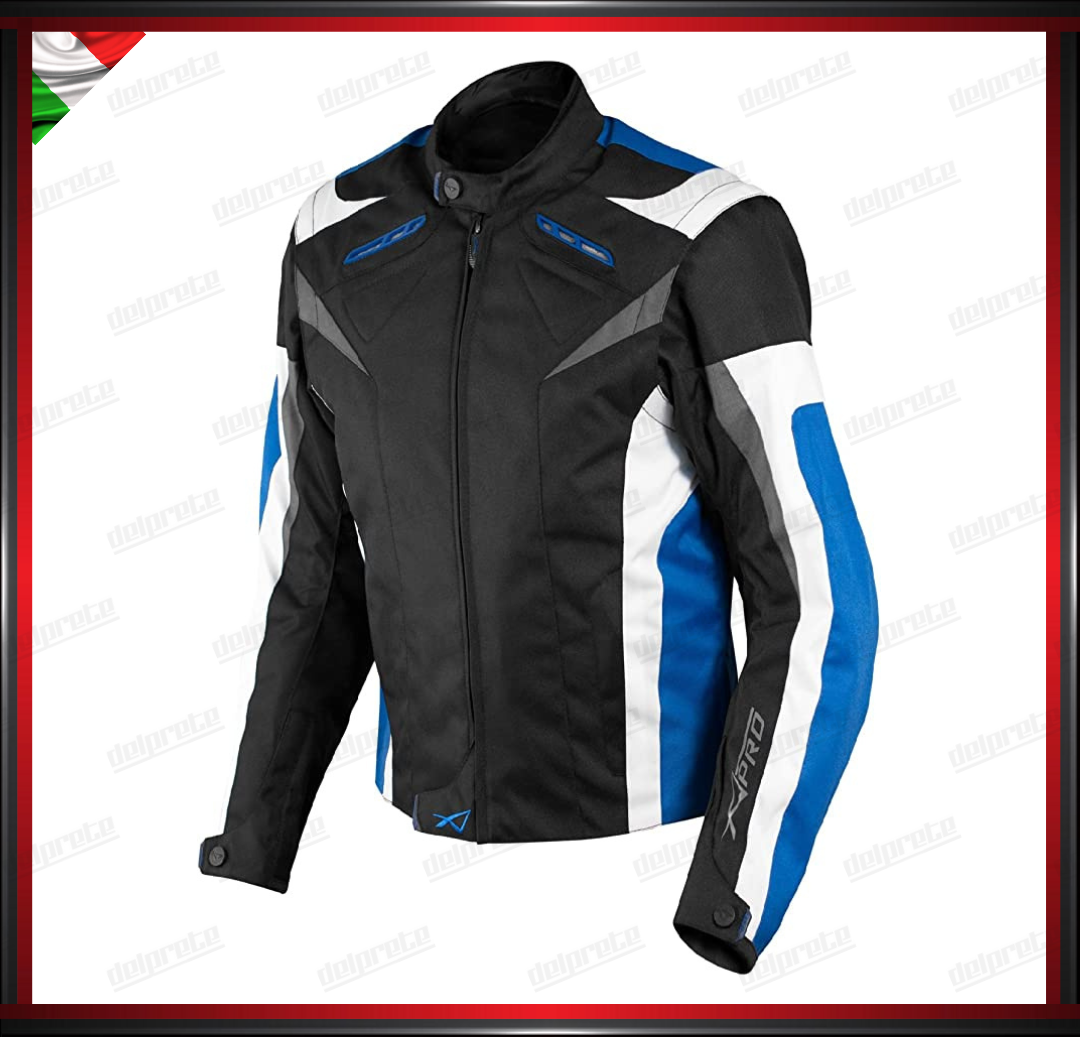 GIACCA MOTO BLU IN CORDURA MANICHE STACCABILE PROTEZIONI OMOLOGATA CE EN17092