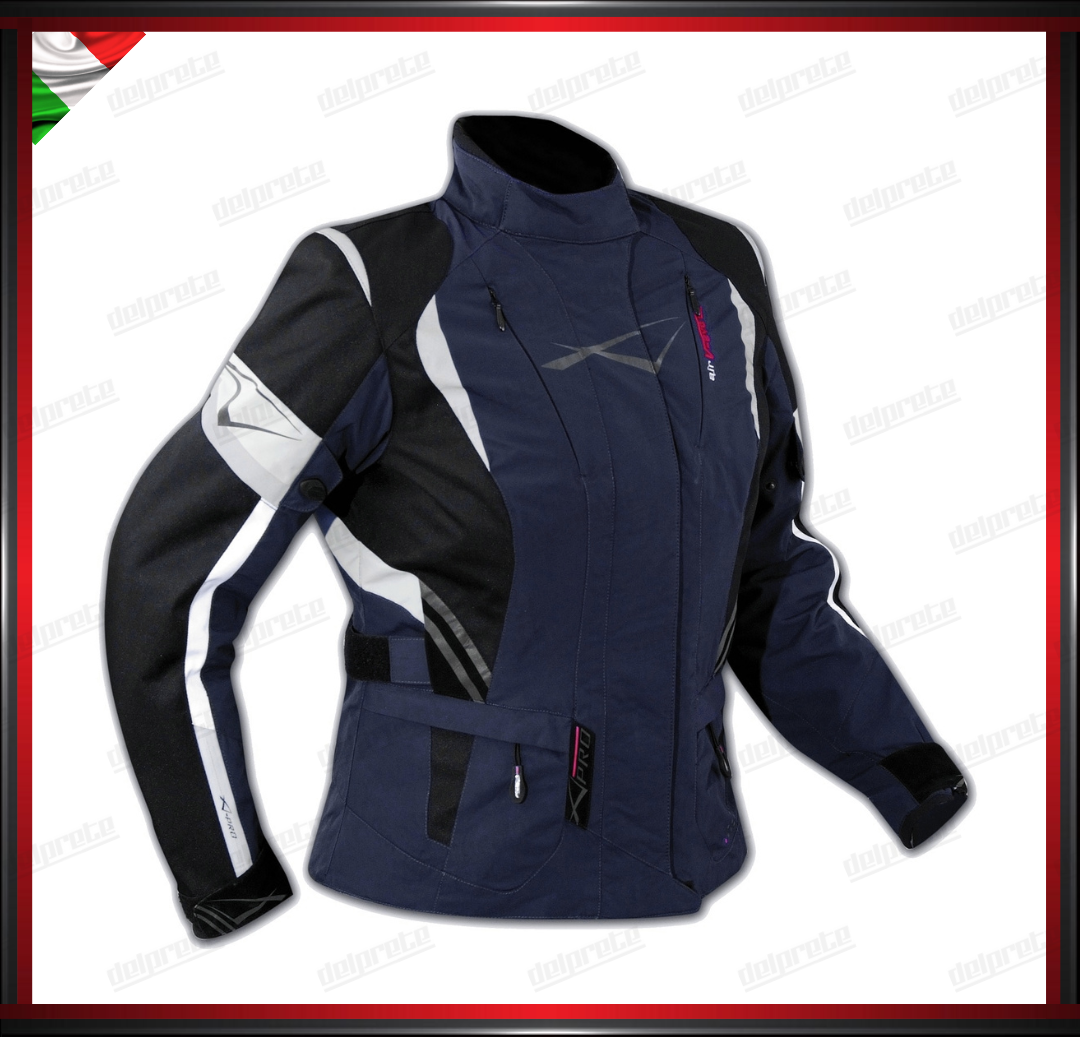 GIACCA MOTO DONNA DARK BLUE IMPERMEABILE SFODERABILE PROTEZIONI OMOLOGATE CE