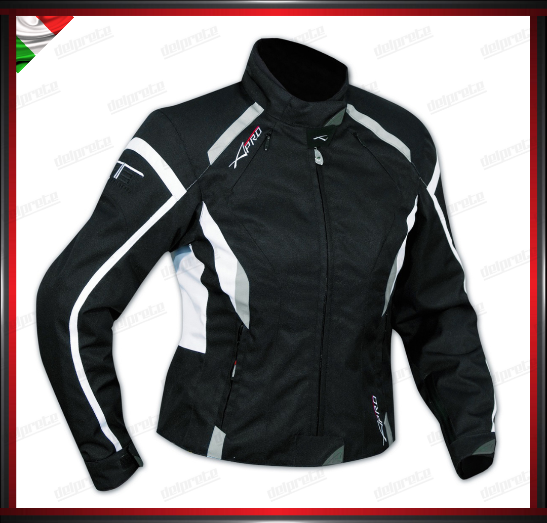 GIACCA MOTO DONNA NERO E BIANCO 4 STAGIONI IMPERMEABILE PROTEZIONI OMOLOGATE CE