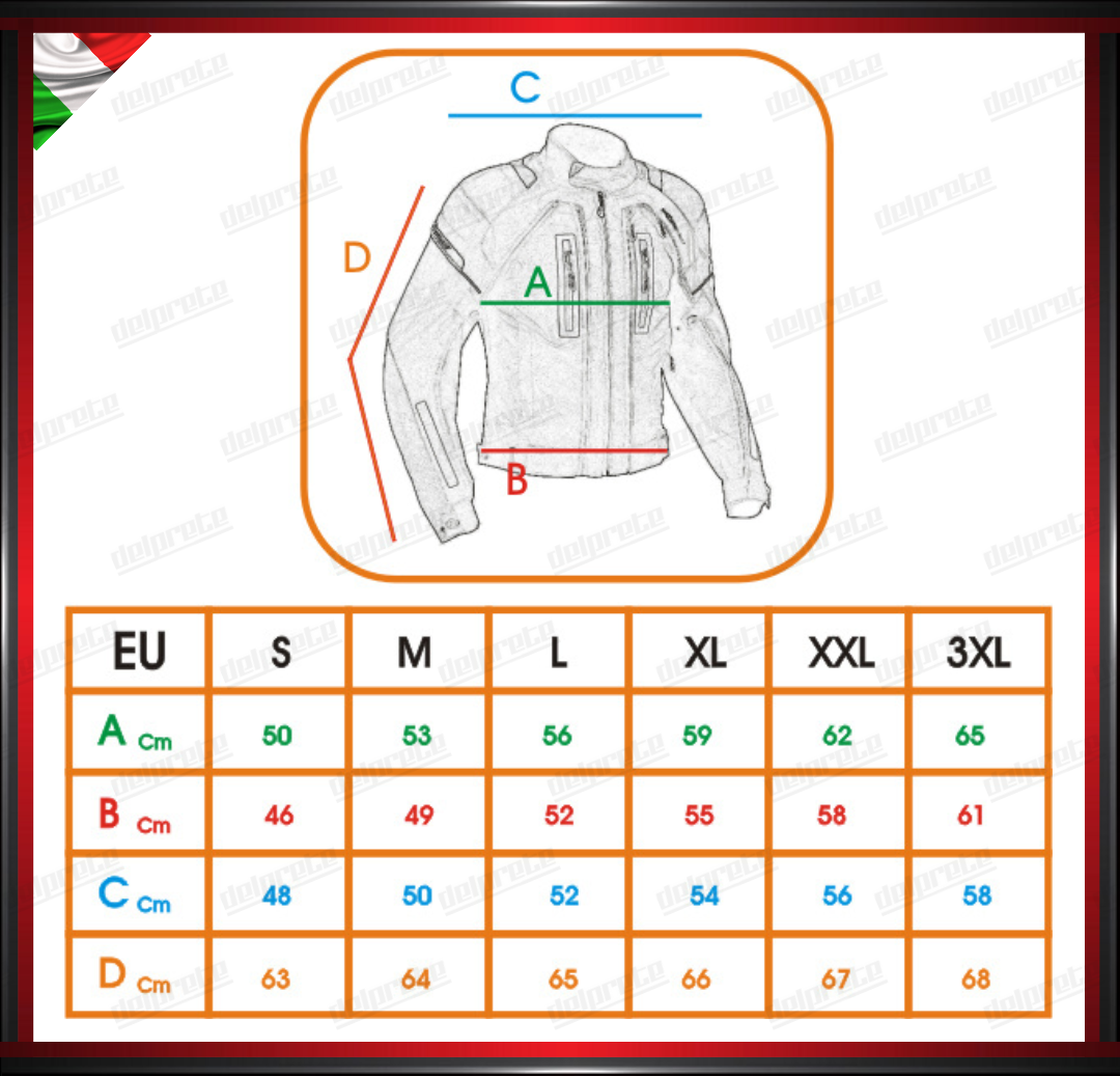 • Il protettore omologato CE per la schiena, può essere acquistato su richiesta.