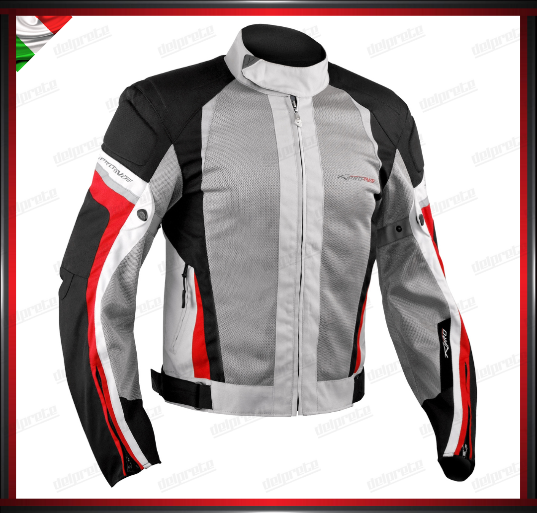 GIACCA MOTO GRIGIO INSERTI ROSSI IN TESSUTO MESH ESTIVA TRASPIRANTE PROTEZIONI OMOLOGATE CE