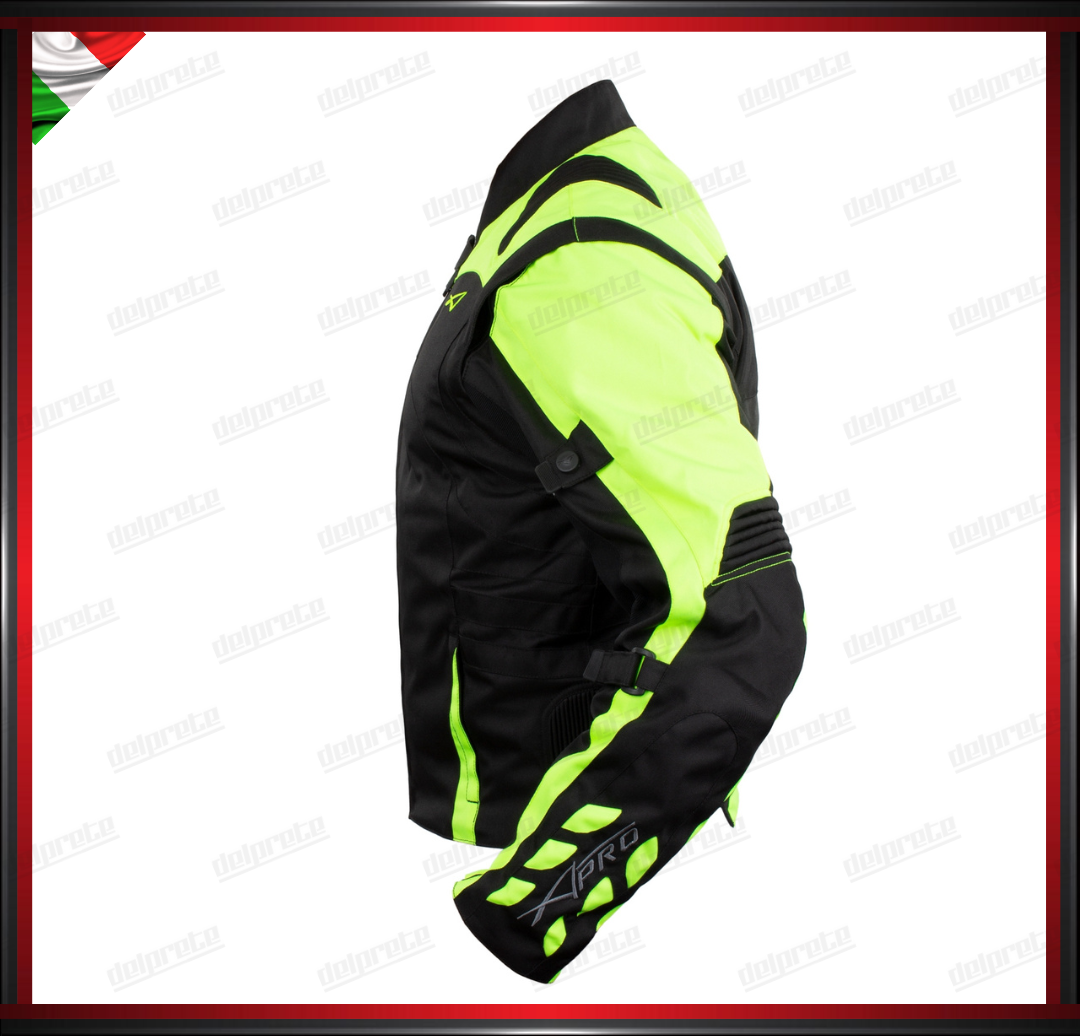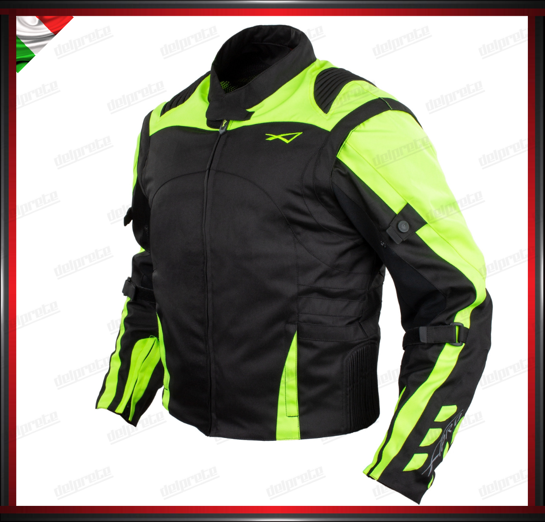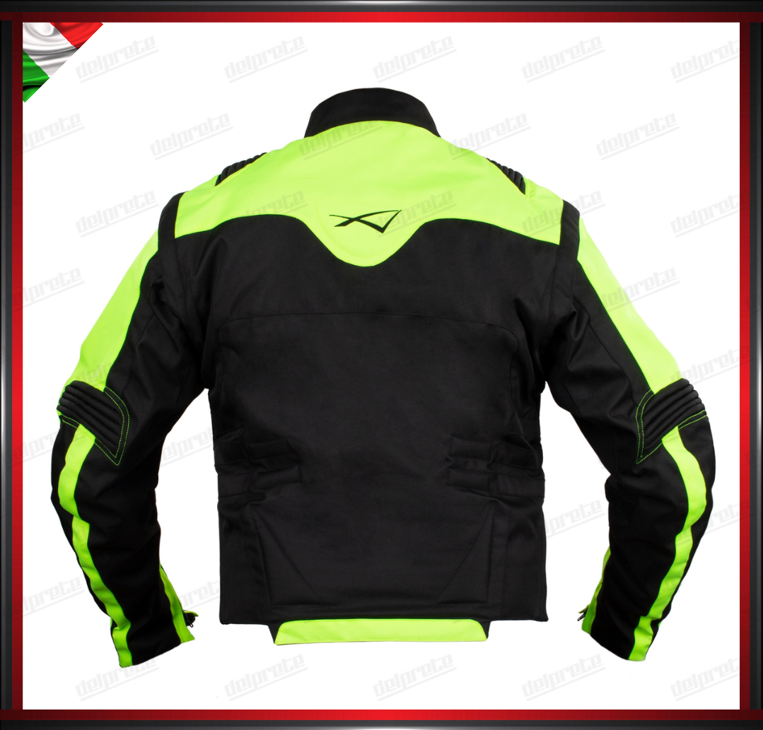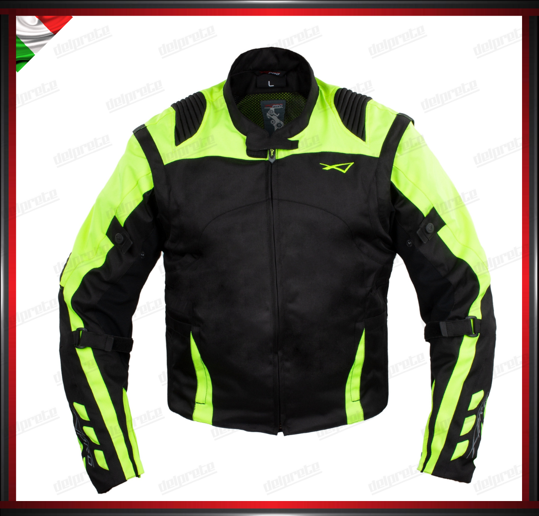 GIACCA MOTO IN TESSUTO FLUO CORDURA MANICA STACCABILE PROTEZIONI OMOLOGATE CE