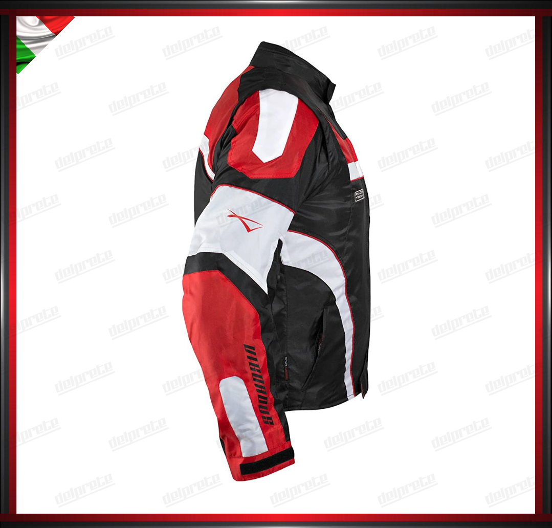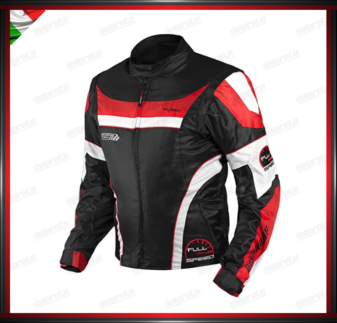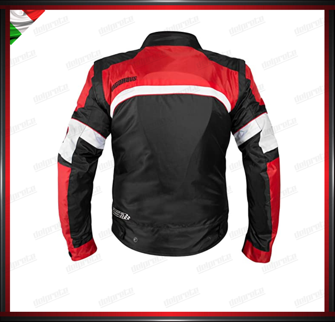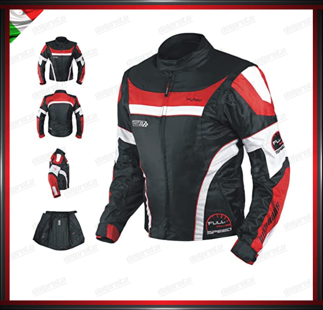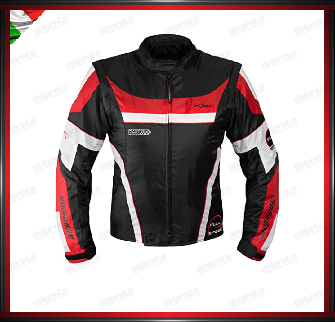 GIACCA MOTO ROSSO IN TESSUTO MANICA STACCABILE PROTEZIONI CE INTERNO SFODERABILE