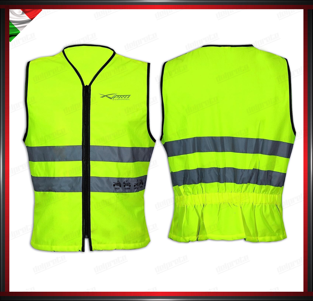 • Gilet Riflettente, in nylon fluorescente, progettato specificamente per uso motociclistico.
