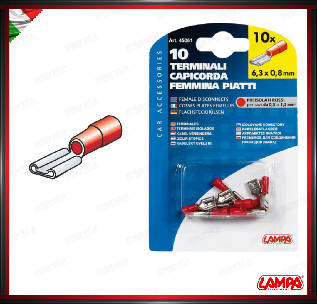 KIT 10 TERMINALI CAPICORDA FASTOM PIATTI ISOLATI LAMPA - ROSSO