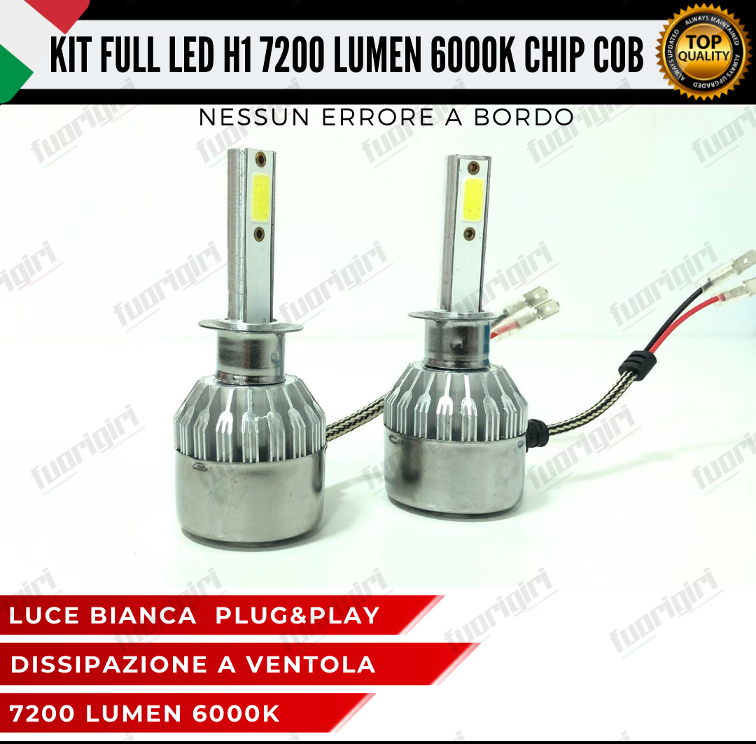 KIT FULL LED H1 CANBUS 7200 LUMEN REALI 6000K BIANCO NESSUN ERRORE AUTO